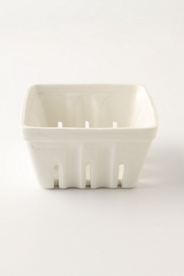 Aren’t they sweet? They’re ceramic versions of those berry baskets we get at the market. It is a funny thing – whenever these hit the table, we all eat more berries. Did we need them? No, but I think they’re fun and functional, and another Anthro hit. Here’s what they look like full. (Sorry for the dull photos, it has been dark and rainy here for the last few days.)